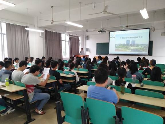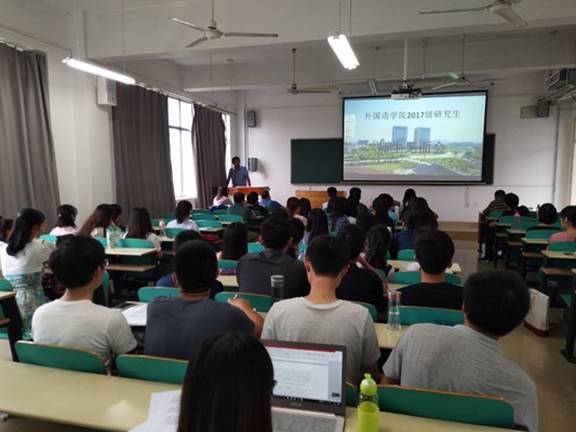 会议首先由胡丹书记代表学院致词,欢迎2017级研究生的到来。胡书记对学生们在研究生期间的学习生活提出了具体要求,教导学生努力在三年里成为有用之才,认真做好语言研究,致力文化的融合、交流和贯通。随后,韩院长为2016级研究生新生介绍了williamhill官网的基本情况,包括学院概况和发展历史等,他向同学们强调本硕的差别和创新的重要性,并根据williamhill官网研究生培养的基本情况,详细介绍了学术型研究生和专业型研究生在培养目标和培养模式上的不同。接下来,副院长唐军介绍了各位导师的科研项目,研究成果等相关信息。