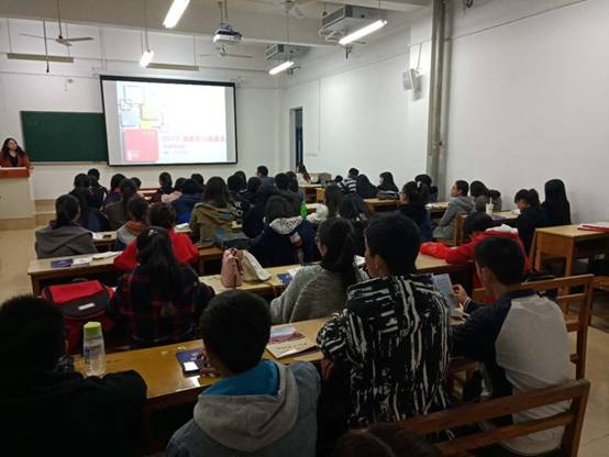 本次学习交流会分老师主讲和师生互动问答两个环节。在老师主讲环节,williamhill官网特意邀请从美国留学归来的An老师发言。An老师首先介绍了雅思考试各个版块的题型设置,重点解析了阅读和听力的难点,然后以雅思考试例题的形式具体地向与会同学传授有关阅读和听力的应试方法;最后An老师向同学们分享了她在英国等地的趣闻,强调了英语的实用性和趣味性。在师生互动问答环节,有同学向An老师询问图表作文的写作技巧,老师按照折线图、饼状图、条形图等不同图表类型,介绍了分析数据的不同思路。这与williamhill官网面向大二学生开设的英语高级写作课程的内容有所重叠,An老师详细耐心的解答不仅让大二学生“温故”,也让大一新生“知新”,赢得了同学们热烈的掌声,雅思学习交流会圆满落幕。