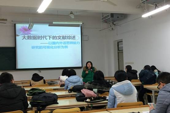 首先,吴伶俐老师做了题为“大数据时代下的文献综述”的精彩学术报告。吴老师分别从文献综述、大数据、可视化三个方面,细致形象地讲解了这一课题。吴伶俐老师先详细展示了文献综述的内涵、意义和常见问题,特别提醒同学们要注意文献综述的价值性和可行性,同学们受益匪浅。然后,吴老师从大数据着手,不仅讲解了可视化的内涵和优势,而且详细展示了可视化分析工具的使用方法。吴老师的报告逻辑严谨,讲解详细,深入浅出,有效拓宽了同学们的研究思路。