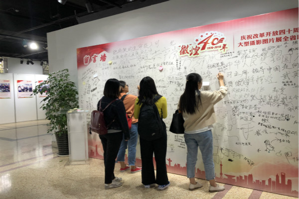 在有序参观完图片展后,学员们纷纷前往留言墙留下了自己对党、国家和个人发展的美好愿望。随后,班主任老师召集大家作了交流发言,同学们表示通过观展非常直观地感受到了安徽省改革开放40年来的发展变化,很感谢在这巨大发展变化背后默默付出辛勤汗水的劳动人民。班主任老师进行总结发言,引导学员珍惜韶华、奋发图强,将个人梦融入中国梦,坚定理想信念跟党走,发扬吃苦耐劳的精神,为实现社会主义现代化建设贡献青春力量。