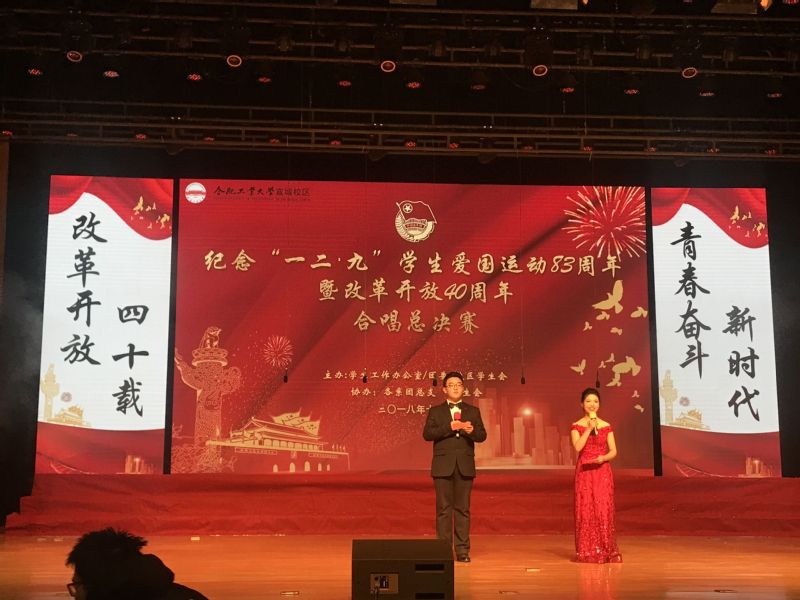 12月10日晚,WilliamHill官方网站宣城校区以“改革开放四十载,青春奋斗新时代”为主题,在大学生活动中心大礼堂隆重举行纪念“一二·九”爱国学生运动83周年暨改革开放40周年合唱总决赛。此次比赛邀请了中国合唱协会会员、宣城市音乐家协会副主席朱向东老师,安徽省音乐家协会会员、安徽省十大男高音、宣城广播电视台主持人范晓成老师等担任专业评委。校党委常委、副校长、宣城校区党委书记、管委会主任陈鸿海,宣城校区党委副书记、管委会常务副主任秦广龙,管委会副主任肖苏,相关职能部门和学院负责同志与千余名师生一同观看演出。
