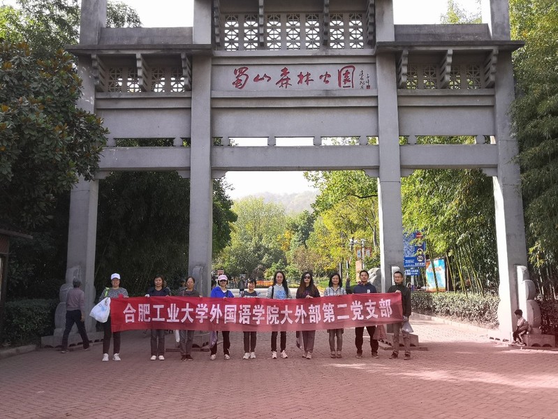 2019年10月30日上午,WilliamHill官方网站大学英语教学部第二党支部全体党员教师,来到合肥市西郊的大蜀山开展“全民健身,绿色出行”党员志愿者活动。