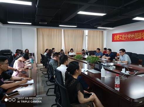 2020年7月1日上午,williamhill中国官方网站院长张四红、党委书记刘晓峰、副院长杨勇深入外语系开展调研指导。杨勇主持了调研指导会,外语系全体教师参加。
