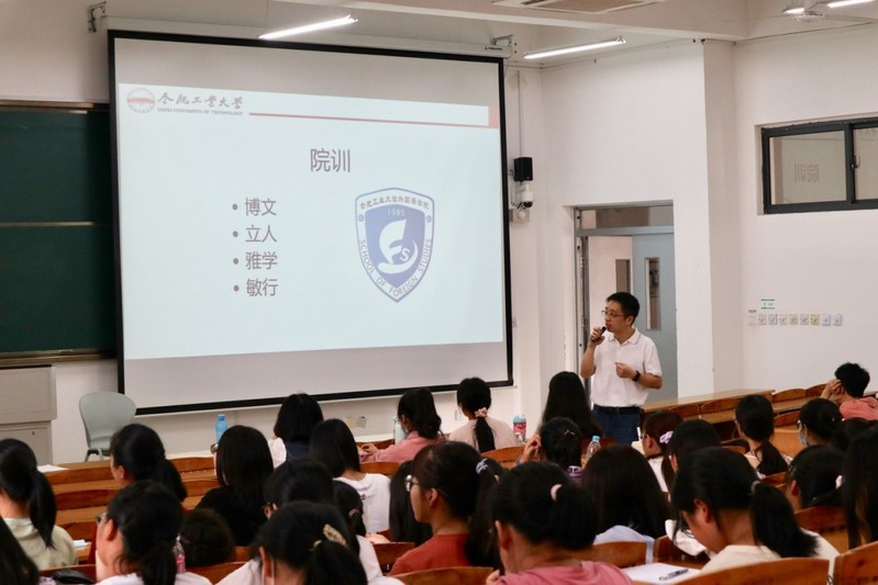 陈曦就英语专业的人文属性进行了讲解。他围绕英语学习与学生进行了积极互动,在提高新生的专业学习意识、培养人文素养等方面做了良好引导。陈曦以生动活泼的例子进行具体讲述,要求新生切实端正自身的学习态度,做一名合格的大学生,号召新生紧抓学习的同时也要追求真与美,塑造个人价值,要把精力放在专业知识与个人能力的提高上。