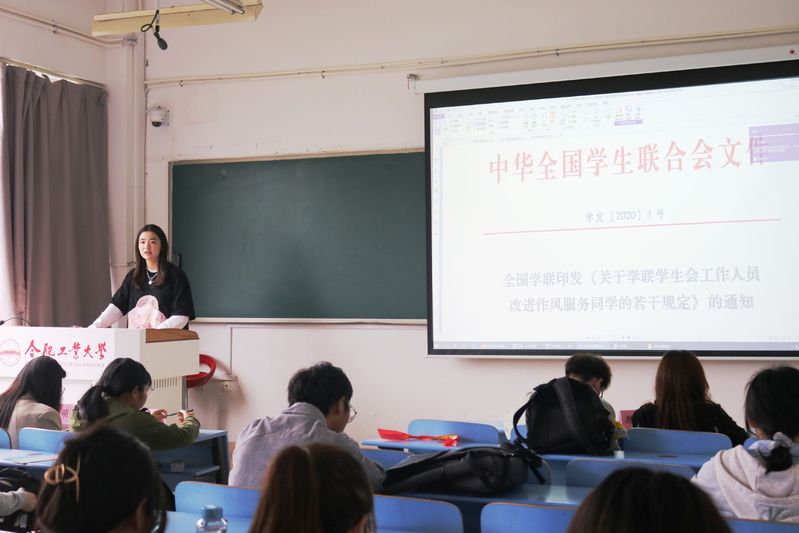 会议开始,主席团成员邓煦阳、贾宗萌分别介绍了《关于推动学生会(研究生会)深化改革的若干意见》、《关于落实共青团和学联对高校学生会(研究生会)指导管理责任的若干规定(试行)》等文件,并一一解读文件具体内容与要求。两人结合外国语学生会改革后的现状以及对未来的规划,向参会学生提出了希望与要求。会后,主席团成员将学习资料上传共享,以供学生会成员学习。