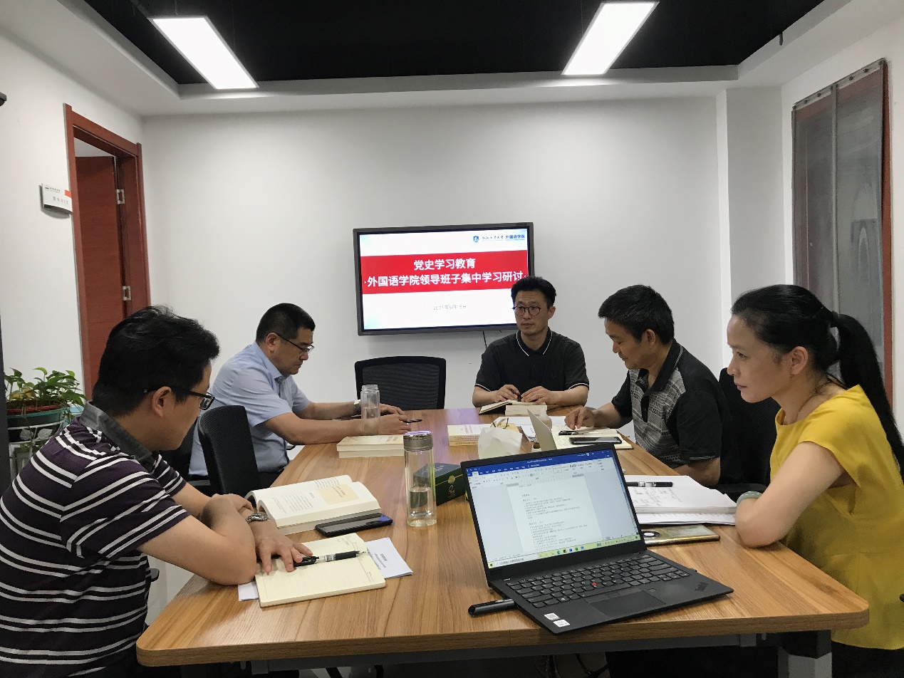 专题学习研讨中,刘晓峰、张四红、唐军、黄川、苏光靖围绕学习党的百年历史,习近平总书记在两院院士大会、中国科协第十次全国代表大会上的重要讲话,以及新修订的《中华人民共和国教育法》《中国共产党普通高等学校基层组织工作条例》等学习内容,联系工作实际,围绕党的思想路线的成功实践、党的教育方针历史变迁、新时代外语教育、语言政策规划发展等内容进行了深入学习交流。