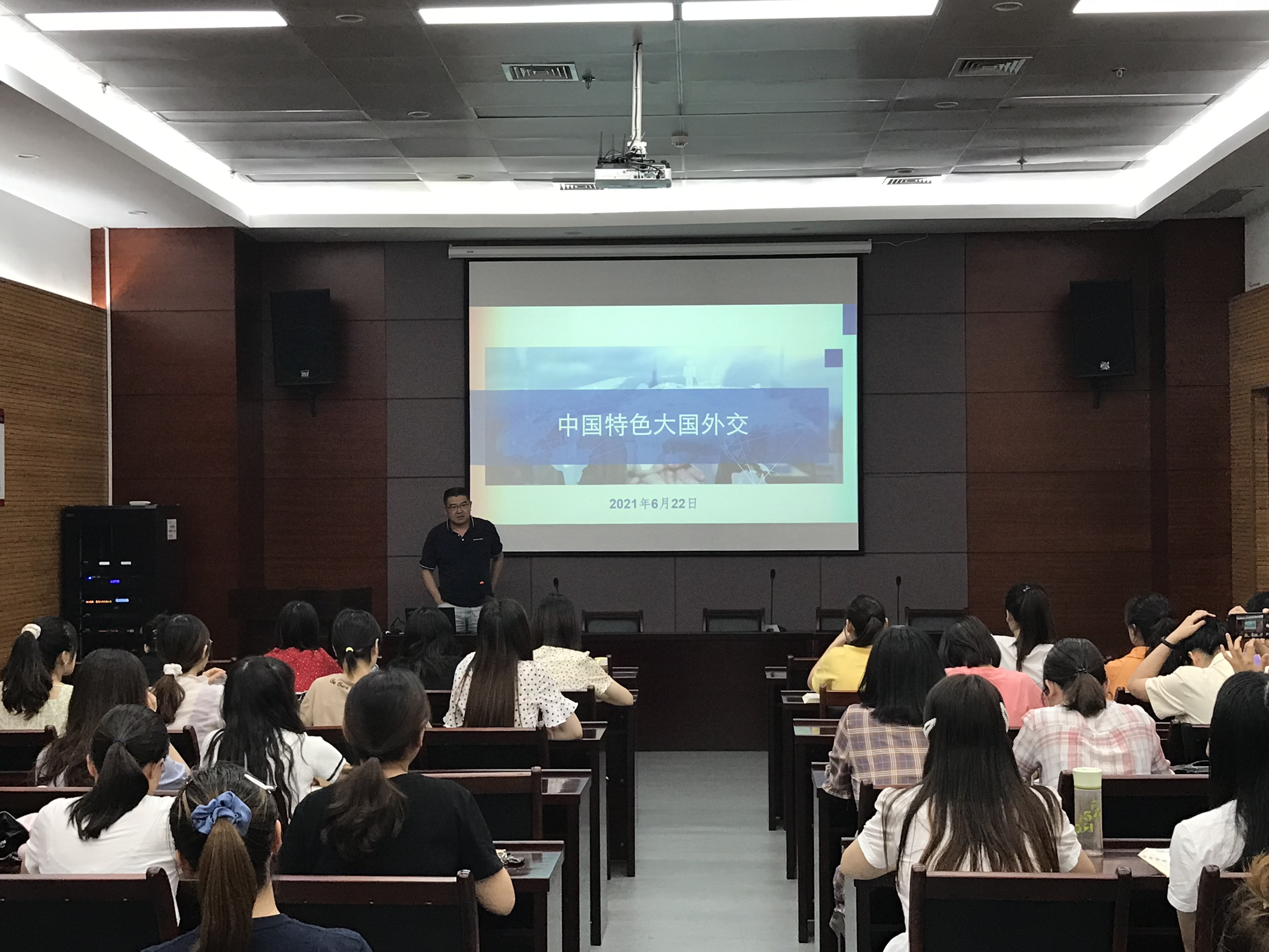2021年6月22日下午,williamhill中国官方网站院长张四红以“中国特色大国外交”为题,在科教楼第五会议室为全体研究生讲授党史学习教育专题党课。