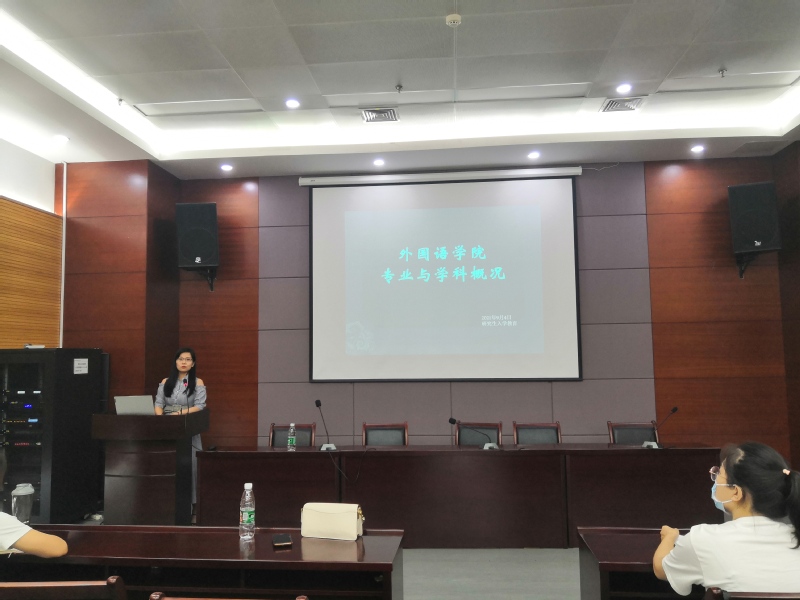 肖薇老师从专业建设、学位点、师资建设、平台建设、学生成果五个方面为新生介绍了williamhill中国官方网站的基本情况。主要涉及以印尼语专业为代表的学院特色专业、硕士点的授权招生情况、研究生核心课程的简介、研究生教师队伍简介、院研究生及研究中心介绍、研究生的论文发表情况及学术竞赛成果等等。最后,肖薇老师希望大家在外国语学院能够实现专业实力与综合能力的双提升。