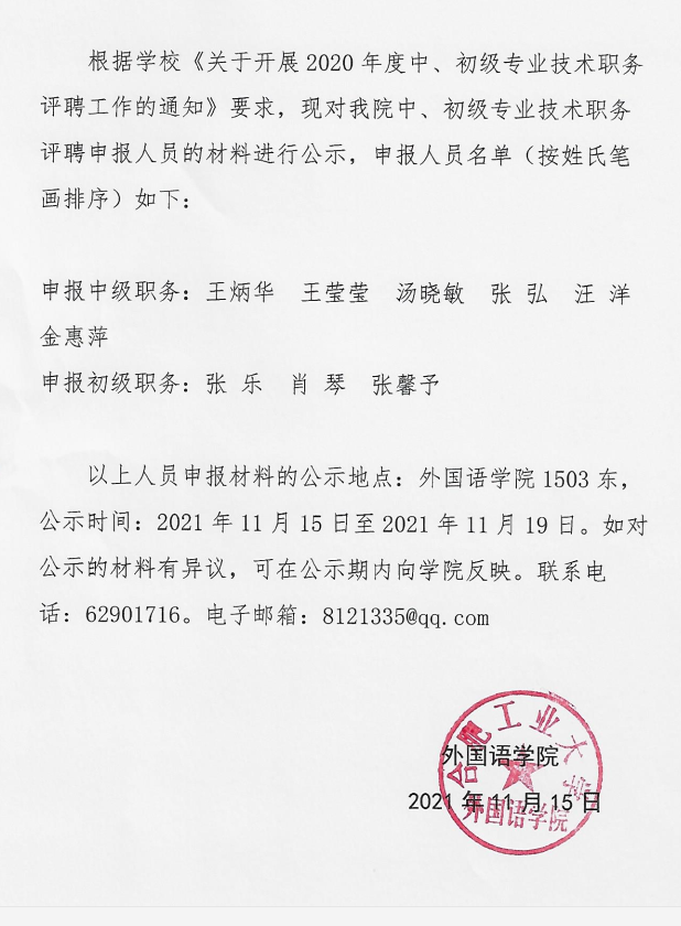 williamhill中国官方网站2020年度中初级专业技术职务申报人员材料公示