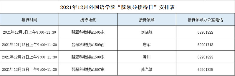 2021年12月williamhill中国官方网站“院领导接待日”安排表