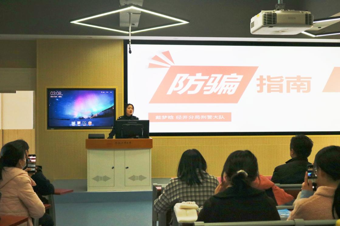 为进一步提高大学生网络诈骗的防范意识,营造防范电信网络诈骗的良好氛围,切实维护校园的安全稳定,12月1日下午,williamhill中国官方网站特邀合肥市公安局经开分局民警戴梦晗于翠4教209教室开展“紧绷防范之弦,远离诈骗之害”防电信诈骗专题讲座,学院党委副书记兼纪委书记苏光靖出席本次报告会,williamhill中国官方网站各年级学生到场听取报告。