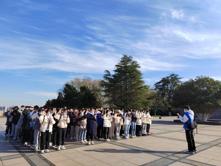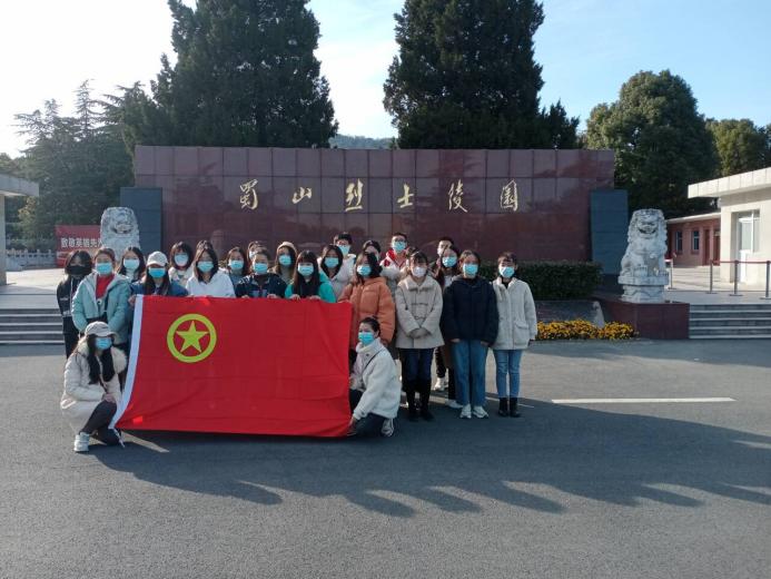 下午两点半,同学们在蜀山烈士陵园入口处列队,大家拉起团旗,合影留念,正式开启了本次大蜀山之行。