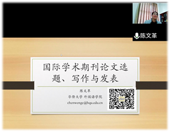 2021年12月22日下午15:00,williamhill中国官方网站语言学研究中心在科教楼A座1508举办了一场题为“国际学术期刊论文选题、写作与发表”的学术报告,由华侨大学williamhill中国官方网站教授、博士生导师陈文革主讲,由williamhill官网唐军教授主持。线上腾讯会议室(266422060)同步进行。语言学研究中心、翻译与专业语料库研究中心、跨文化交际研究中心、文学翻译研究中心主任和部分教师,以及部分研究生参与了线上线下互动。