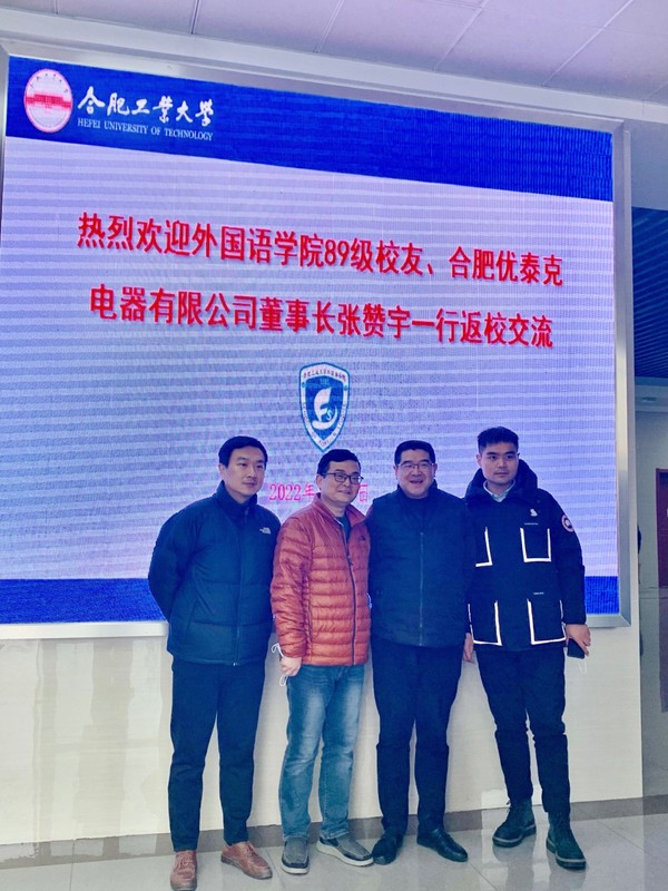 2022年1月19日下午,williamhill官网89级校友、合肥优泰克电器有限公司董事长张赞宇率公司骨干一行访问williamhill中国官方网站。学院领导班子全体成员、退休教师代表和各系主任参与接待交流。