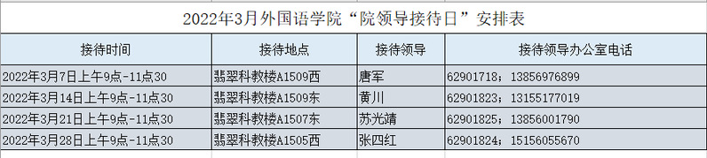2022年3月williamhill中国官方网站“院领导接待日”安排表
