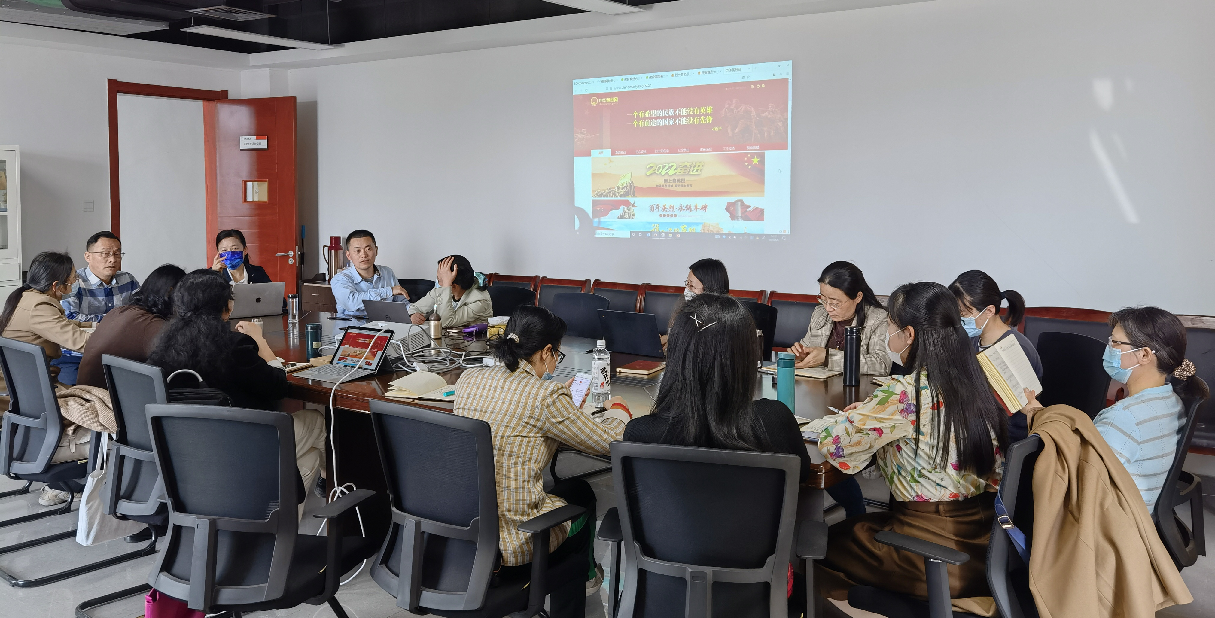 2022年4月6日下午2时许,研究生外语教学系全体党员登录中华英烈网。为烈士敬献花篮,留言寄语,寄托对革命英烈无限哀思和崇敬之情。全体党员在党旗前重温入党誓词,宣誓继承英烈遗志。随后每位党员又纷纷讲述了盛习友,王伟,陈延年,王稼祥等十几位烈士为祖国为人民抛头颅,洒热血,不惜牺牲自己生命的感人事迹。