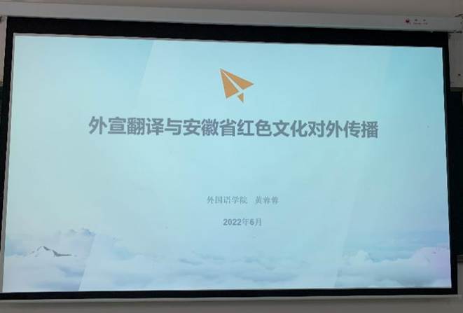 为了增强当代大学生对安徽省红色文化的深刻感悟,使红色基因在大学生一代得以传承,2022年6月2日,williamhill中国官方网站提高系测试与竞赛教研室教师黄蓉蓉在翡翠湖校区第六教学楼203教室为学院2021级研究生带来“外宣翻译与安徽省红色文化对外传播”主题报告。