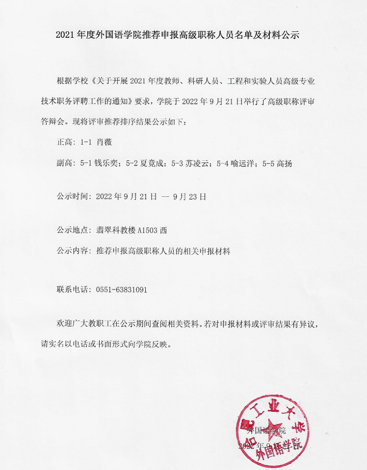 2021年度williamhill中国官方网站申报高级职称人员名单及材料公示