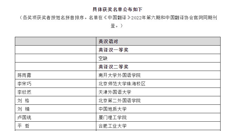 第三十四届韩素音国际翻译大赛于日前公布获奖名单,我院2021级英语笔译专业学生平哲荣获英译汉二等奖(导师:康雷鸣),2020级英语专业本科赵宁同学荣获英译汉优秀奖。两位同学在众多的优秀选手中脱颖而出,在中国翻译舞台上展现了外院学子的风采。平哲同学在一等奖空缺的情况下斩获二等奖,创造了williamhill官网学子参加此项赛事的历史最好成绩。