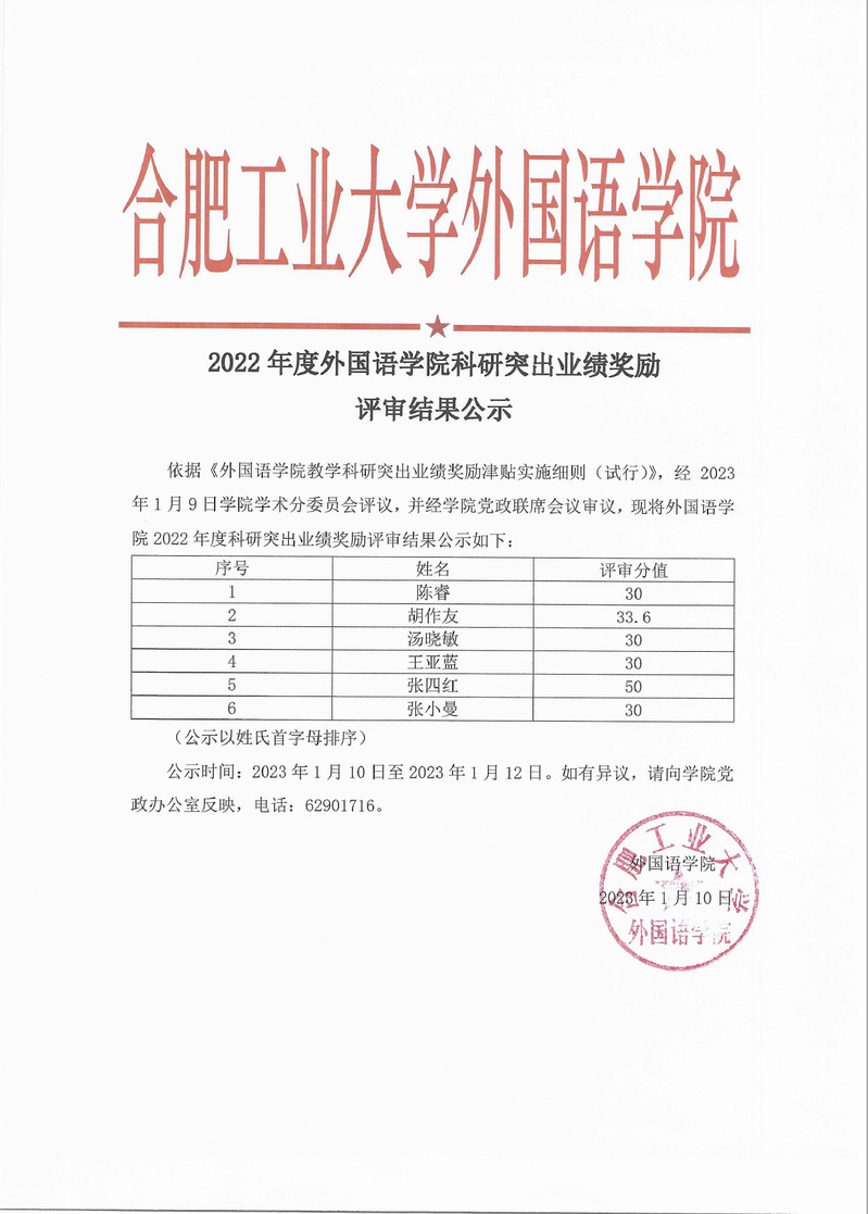 2022年度williamhill中国官方网站科研突出业绩奖励评审结果公示