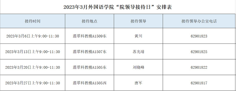 2023年3月williamhill中国官方网站“领导接待日”安排