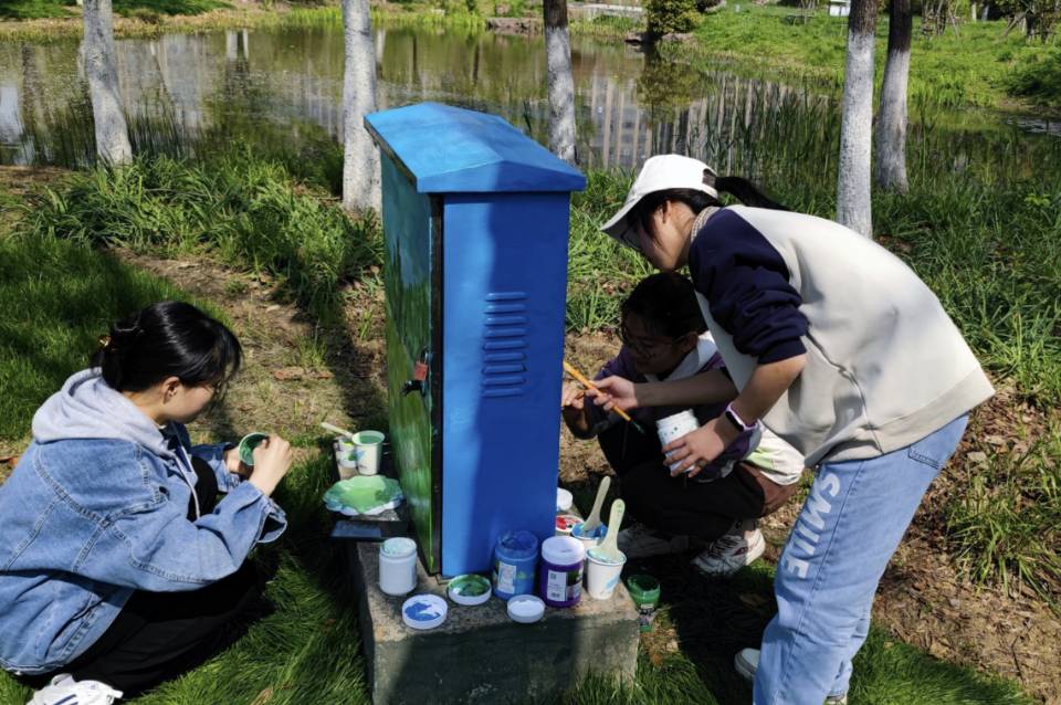 为美化城市环境,助推文明城市创建,4月8日,williamhill中国官方网站晨风社联合校书法协会前往合肥市南艳湖公园开展“电箱新衣,城市美景”主题绘画志愿活动。
