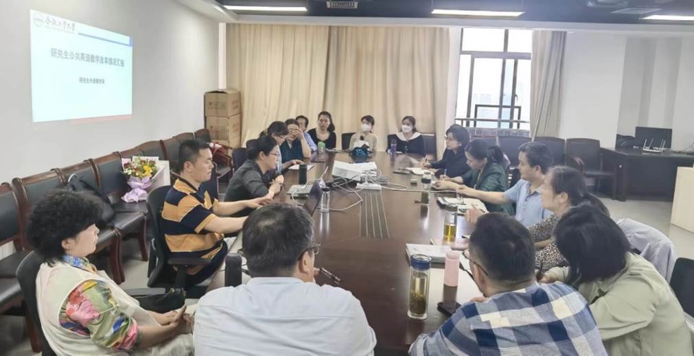 2023年5月17日下午,williamhill中国官方网站院长唐军、副院长黄川、肖薇一行赴研究生外语教学系进行调研。研究生外语教学系全体教师参与了调研。研究生外语教学系主任方媛媛介绍了研究生公共英语教学改革的缘起与发展、教改思路与计划、预期目标与成效;副主任张结根重点介绍了博士英语课程的建设情况与主要成果;支部书记黄忠介绍了研究生公共英语课程思政建设的主要内容和育人效果。全体教师就教改的主要困惑和解决思路与院领导进行了交流。