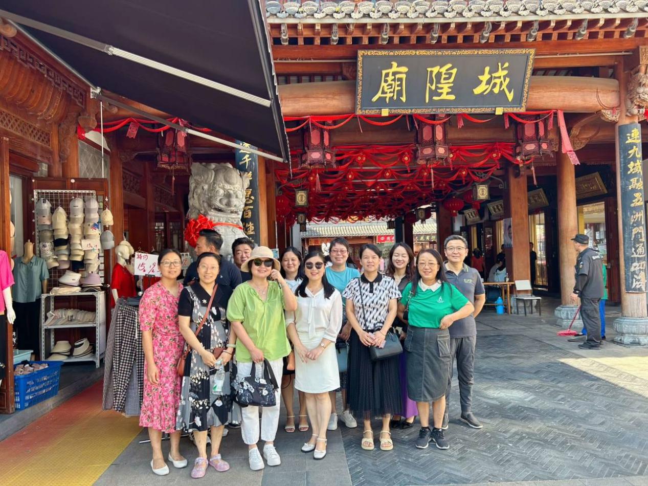 随后,支部党员教师们前往参观合肥的代表性地标建筑之一城隍庙,寻访古庐州府历史文化。如今的城隍庙市场,整体为徽派仿古建筑,还开设了白石斋、九狮楼、徽光阁、庐阳宫、小商品世界和古玩城等多家商店,以及酒楼、茶座、艺苑、舞厅等。这里不仅见证了合肥古老的文化历史,也书写了合肥改革开放后的商业传奇,几经改造重新焕发新的活力生机。