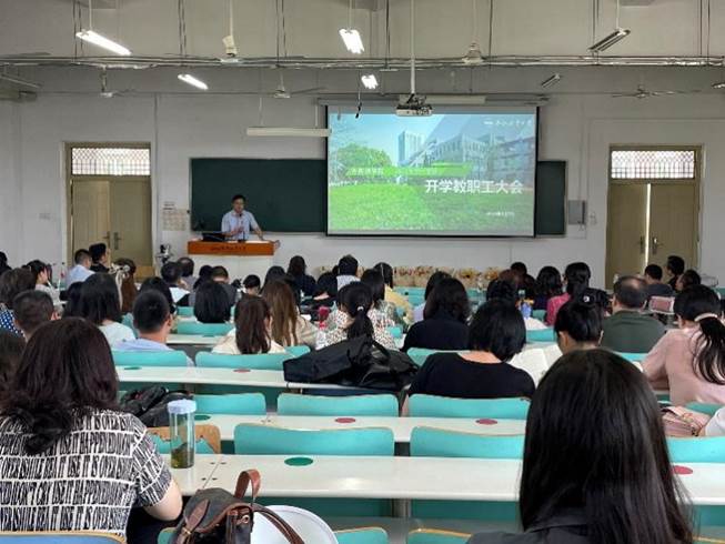 2023年9月9日上午,学院新学期教职工大会在翡翠湖校区12教106教室召开,全体教职工参加了会议,会议由党委书记刘晓峰主持。