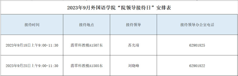 2023年9月williamhill中国官方网站“院领导接待日”安排表