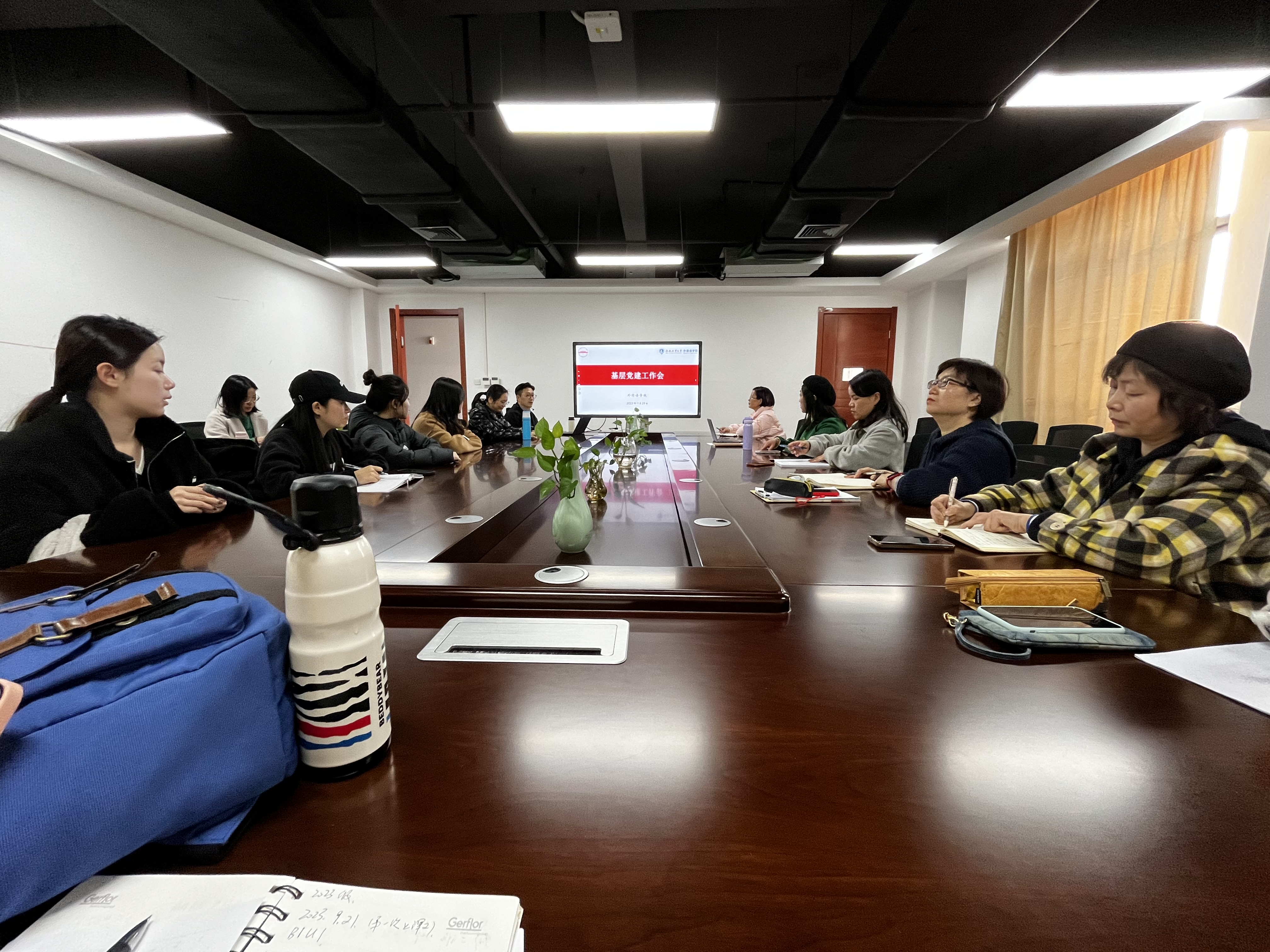 为了深入学习宣传贯彻党的二十大精神,进一步加强党支部标准化和规范化建设,苏光靖从“三会一课”的重要性出发,详细解读了高校党支部的基本任务、重点任务、工作机制、组织生活等,并就如何规范化记录党支部各类会议对参会人员进行了培训。参会人员就党支部会议记录的格式、议事内容和会议组织情况等做了交流。