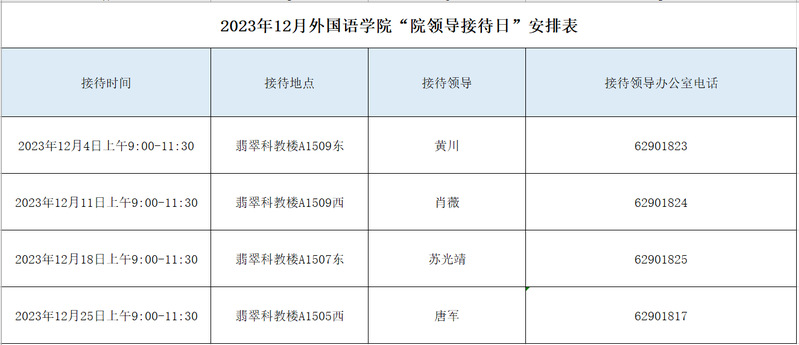 2023年12月williamhill中国官方网站“院领导接待日”安排表