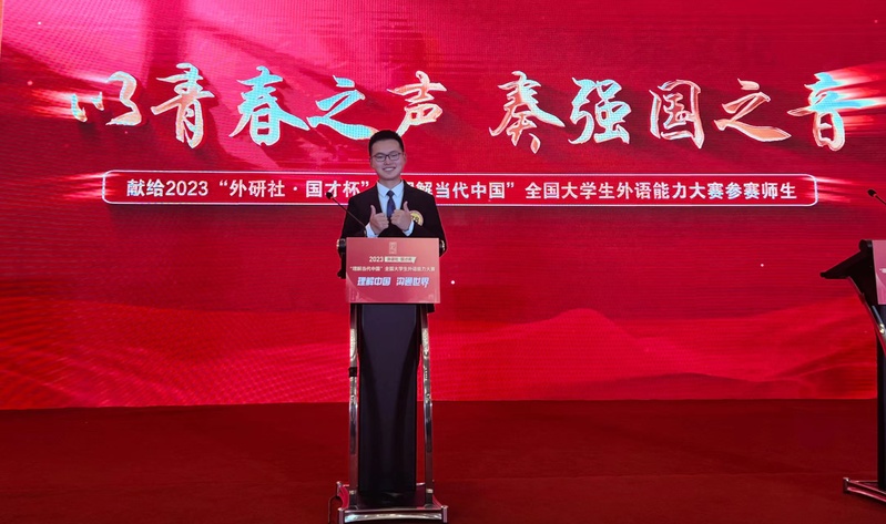 “外研社·国才杯”“理解当代中国”全国大学生外语能力大赛是入选教育部中国高等教育学会发布的《2023全国普通高校大学生竞赛分析报告》竞赛目录的重要赛事,大赛的专业性与权威性得到高校师生的广泛认可。此次大赛以“理解中国,沟通世界”为主题,引导选手们理解中国之路、中国之治、中国之理。大赛为大学生打造了一个展现风采、实现自我的赛事平台,也为我国高等外语教育营造了凝聚创新、融通中外的交流平台。我校选手在本次比赛中热情饱满,奋勇争先,取得了骄人成绩,充分展现了他们过硬的外语能力、跨文化能力、思辨能力、创新能力等综合素养。学子们激扬文字、挥斥方遒,显现了其志存高远、昂扬奋发的精神面貌,更反映出我校在外语教育改革创新与落实思政育人方面的显著成效。