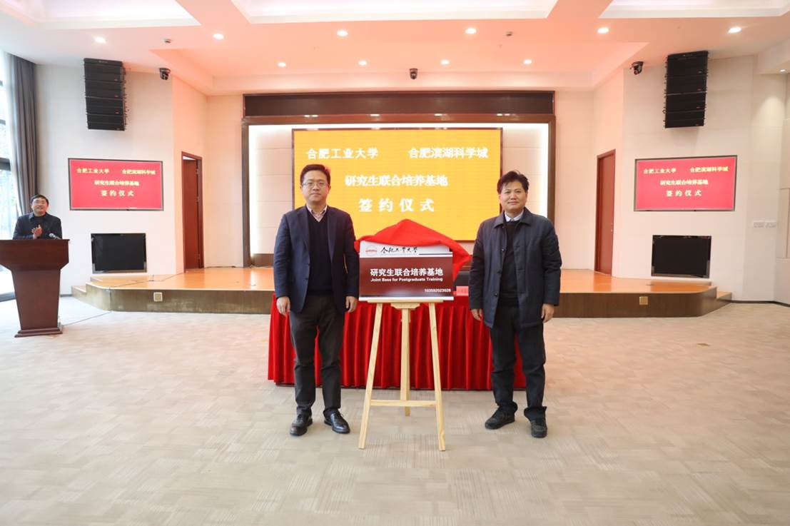 12月13日,WilliamHill官方网站与合肥滨湖科学城管理委员会(“滨湖科学城”)举行共建研究生联合培养基地授牌仪式。校党委常委、副校长汪萌和滨湖科学城管委会党工委委员、管委会常务副主任吴爱国共同为基地揭牌。
