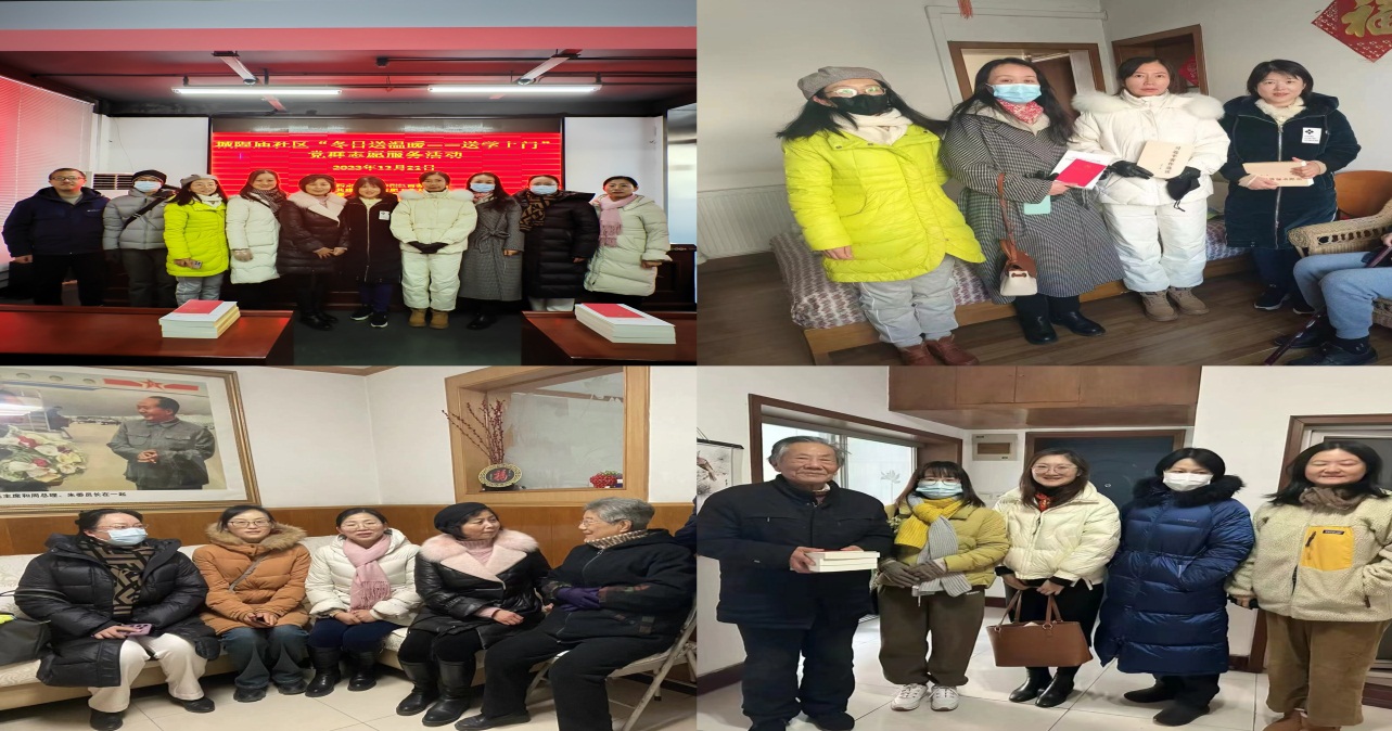 近日,寒冬临近,雨雪交加,气温骤降。为更好关爱辖区年老体弱、行动不便的老党员们,12月21日下午,WilliamHill官方网站大外部一系课程教学教研室党支部、一系竞赛测试教研室党支部及二系竞赛测试教研室党支部联合庐阳区三孝口街道城隍庙社区,组织党员及群众志愿者们为社区老党员们开展了“冬日送温暖——送学上门”活动。社区四联四定单位庐阳区商务局党委也出席参加。