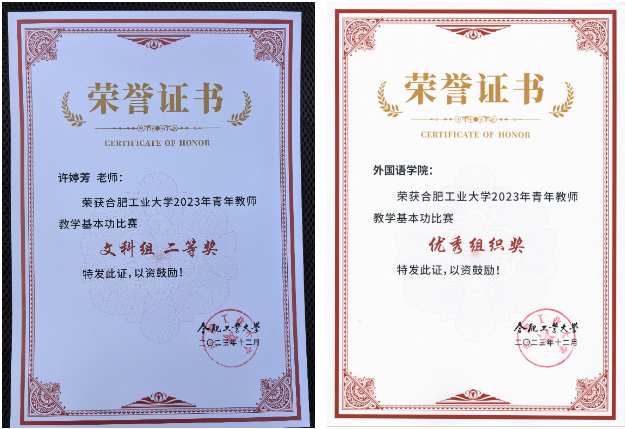 学院高度重视,充分动员,按照要求制定本单位的比赛方案,主动创造条件为参赛教师提供条件和支持。预赛场上,汪岚、汤晓敏和许婷芳三位青年教师积极响应,大方展示;复赛录课环节,汤晓敏和许婷芳两位老师携手并进,进步显著;决赛现场,许婷芳老师状态自如,彰显外院教学真风采,荣获文科组二等奖。