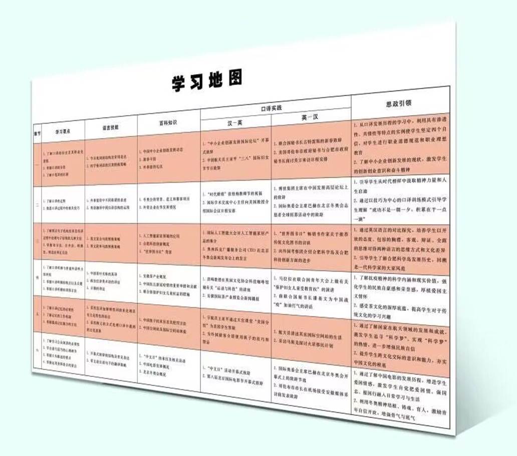该教材采用学习地图的方式,将学习要点、语言技能、百科知识、口译实践进行立体化建构,优化和突出“思政引领”设计。用思政元素串联各类口译实例,提升学生对时事政治的关注度、理解力,增强学生对中国文化的认同感、归属感和自豪感,帮助学生更好地讲好中国故事,发出中国声音。