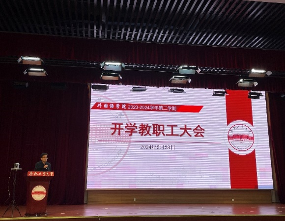 2024年2月28日下午,学院新学期教职工大会在翡翠科技楼A座二楼报告厅召开,全体教职工参加了会议,宣城校区教师通过腾讯会议参加。会议由党委书记刘晓峰主持。