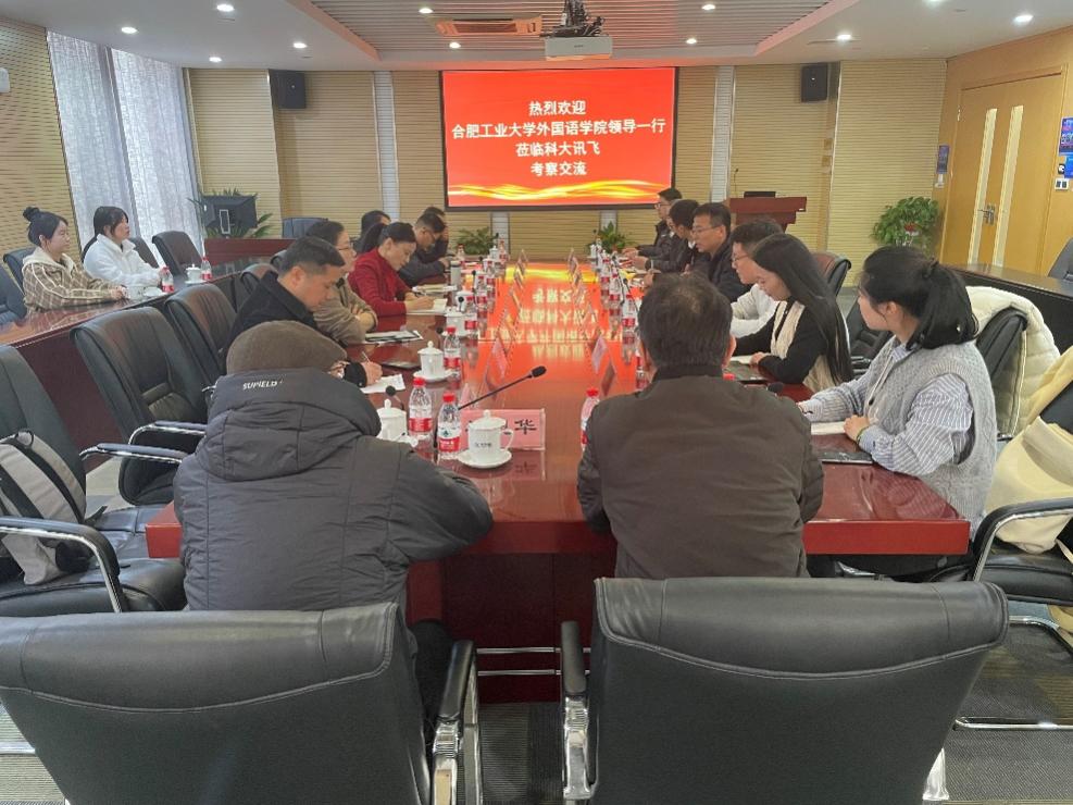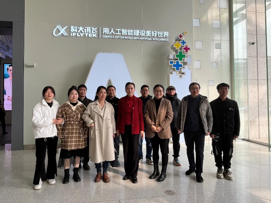 3月7日下午,学院院长唐军、外语系副主任王业昭、研究生外语教学系主任方媛媛、大学英语系主任李康熙和楼宝春、现代教育技术中心主任周子强、党政办公室主任苏凌云以及学生代表一行11人赴科大讯飞集团有限公司合肥总部进行调研交流。科大讯飞集团有限公司高教部副总经理张道平、研究院研究主管杨振华、高教线售前咨询总监孟令政等热情接待并参与了座谈。