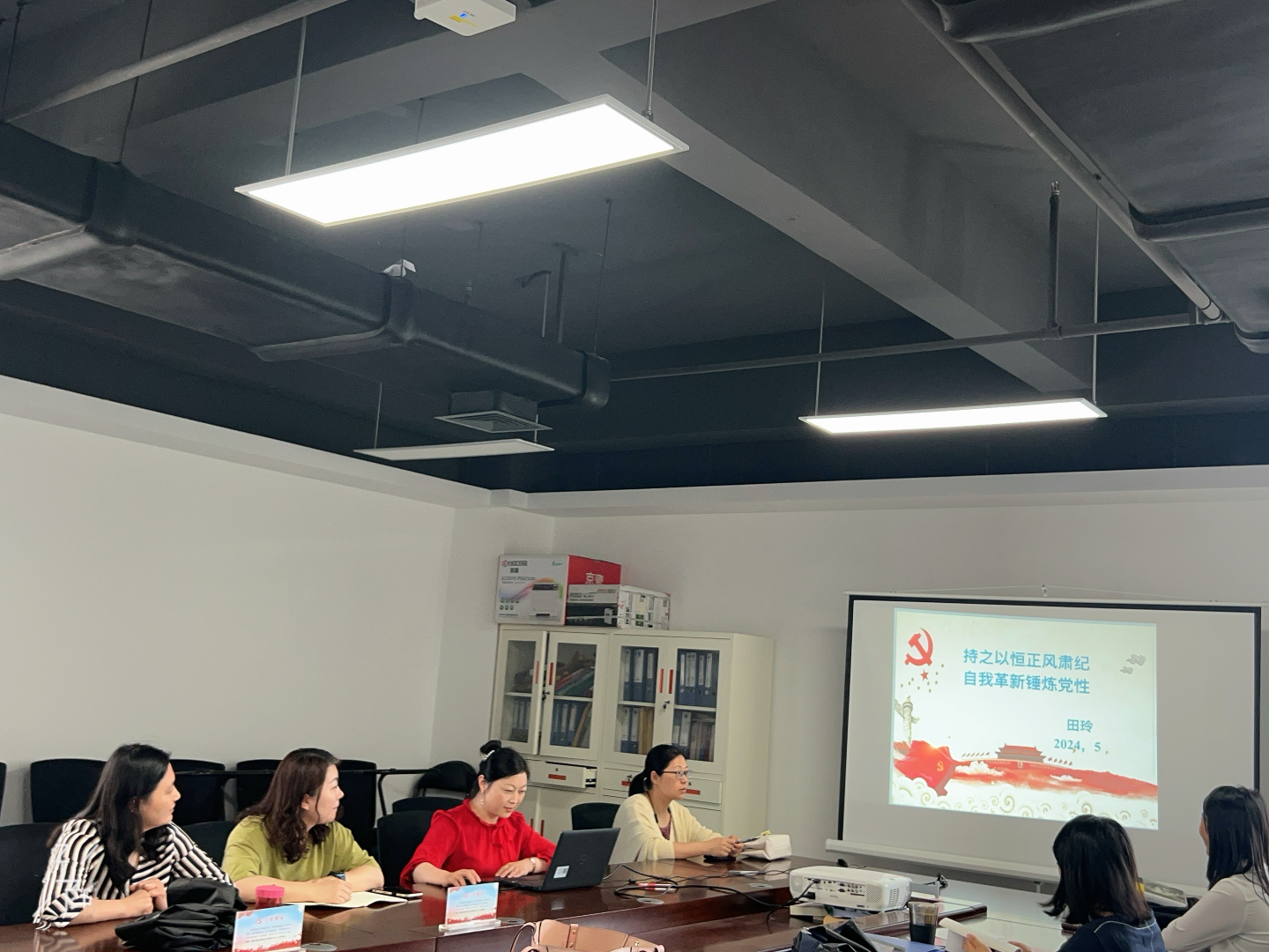 2024年5月15日下午,williamhill中国官方网站大英一系课程教学教研室党支部田玲书记在科教楼A1401为支部全体党员讲了一堂精彩的党课,主题是《持之以恒正风肃纪,自我革新锤炼党性》。