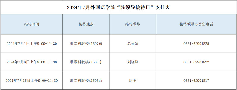 2024年7月williamhill中国官方网站“院领导接待日”安排表