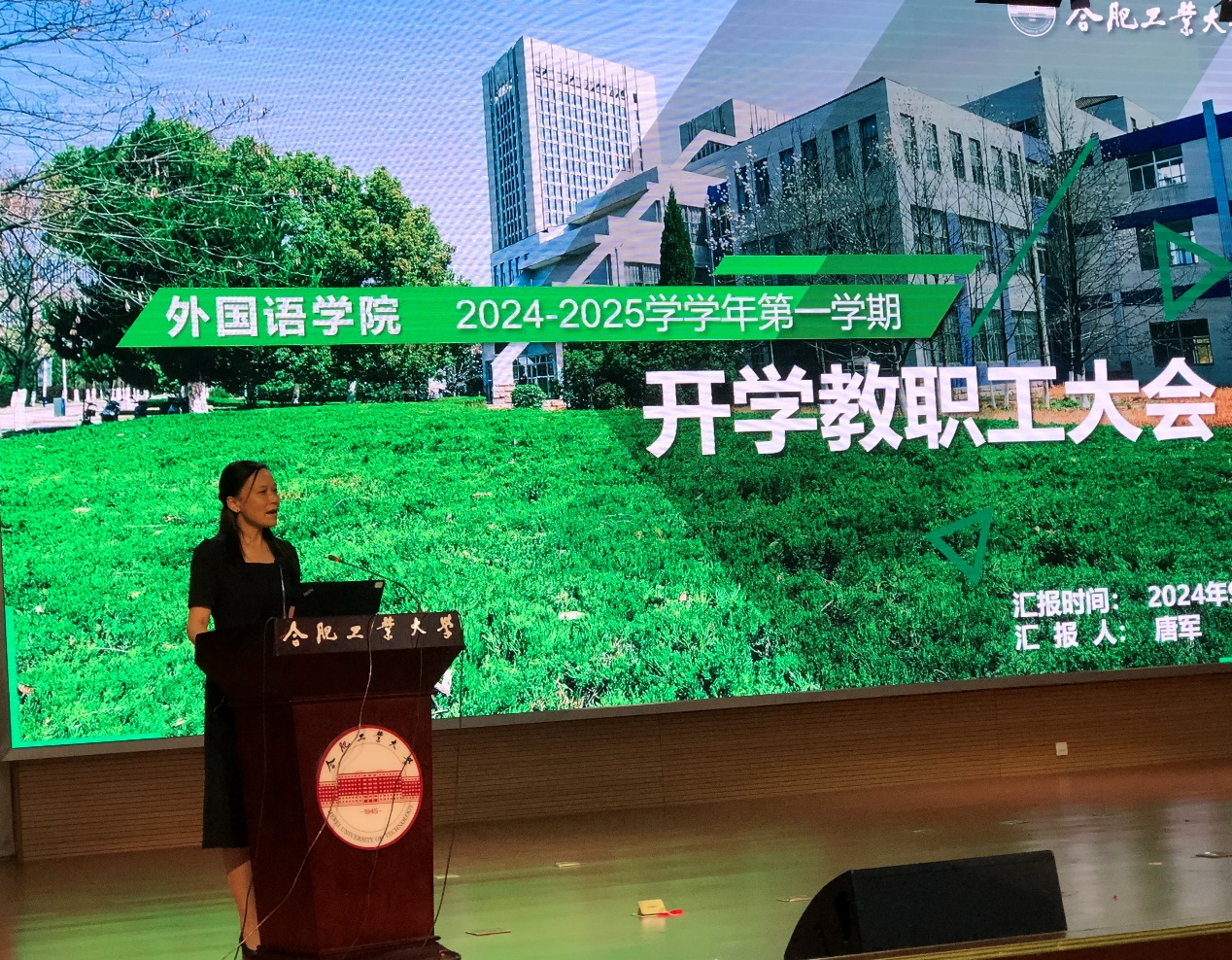 党委副书记兼院长唐军基于“春夏耕耘” “犹有不足” “奋力前行” “共创未来”四个方面,回顾了学院上半年党建和思想政治、教学、科研、学科建设、师资队伍建设、学生工作、国际交流与合作等主要工作;简述了学院在专业建设、师资结构和资源筹措方面的不足;要求全体教职工扎实推进“国一流”建设、优化师资结构、深入推进有组织的科研、持续推进公共外语教学改革和创新创业教育;期待全院教职工秉承“博文立人,雅学敏行”的院训,继往开来、携手共进,推进学院高质量发展。