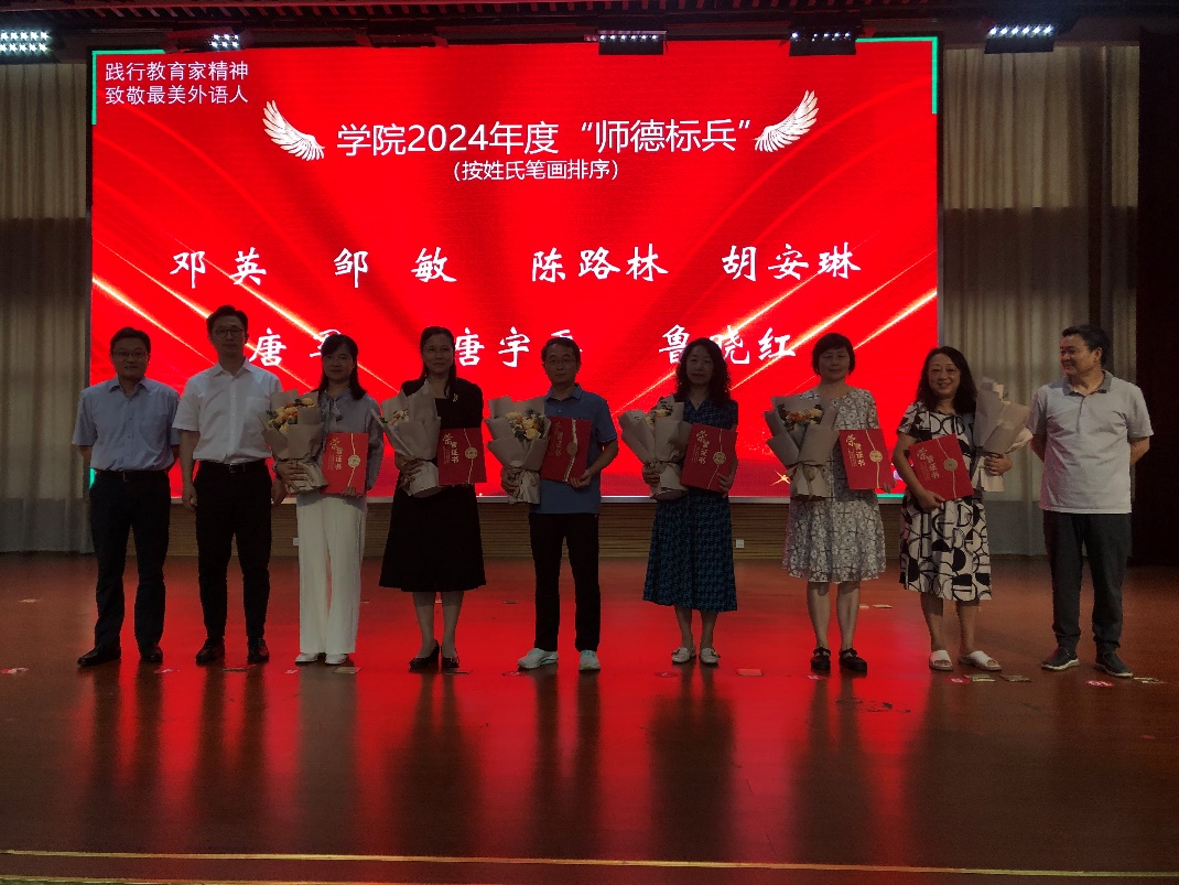 随后,学院举行了庆祝第40个教师节暨师德标兵、“从教30年”表彰仪式。刘晓峰介绍了汪方芳、雷炳浩和徐小燕三位新入职的老师,对获得学院2024年度“师德标兵”荣誉称号的邓英等7位教师和“从教30年”的孙其标等6位教师进行了表彰。