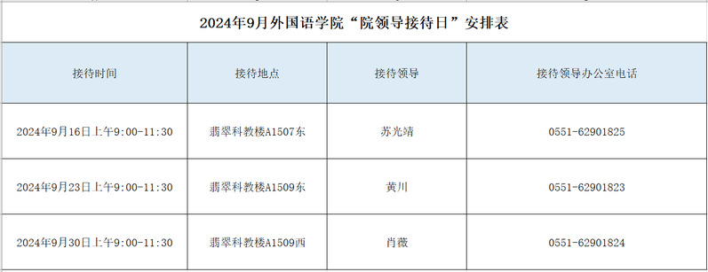 2024年9月williamhill中国官方网站“院领导接待日”安排表