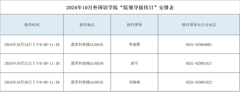 2024年10月williamhill中国官方网站“院领导接待日”安排表