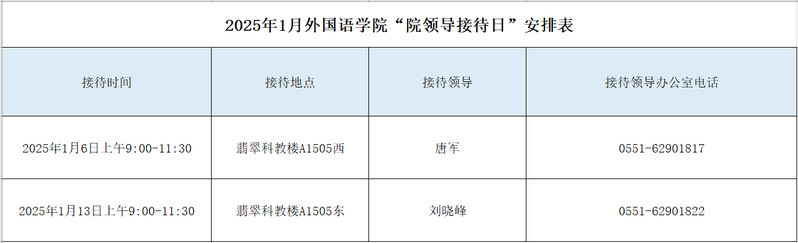 2025年1月williamhill中国官方网站“院领导接待日”安排表