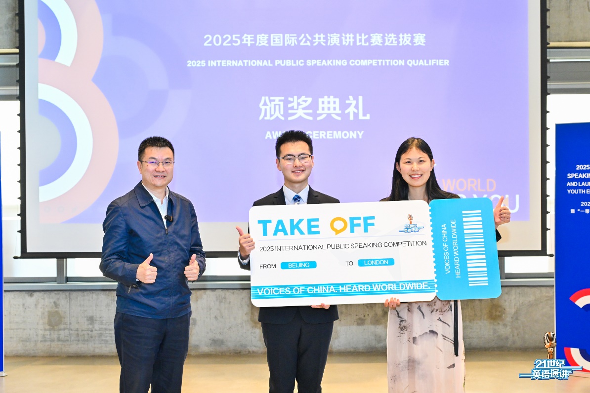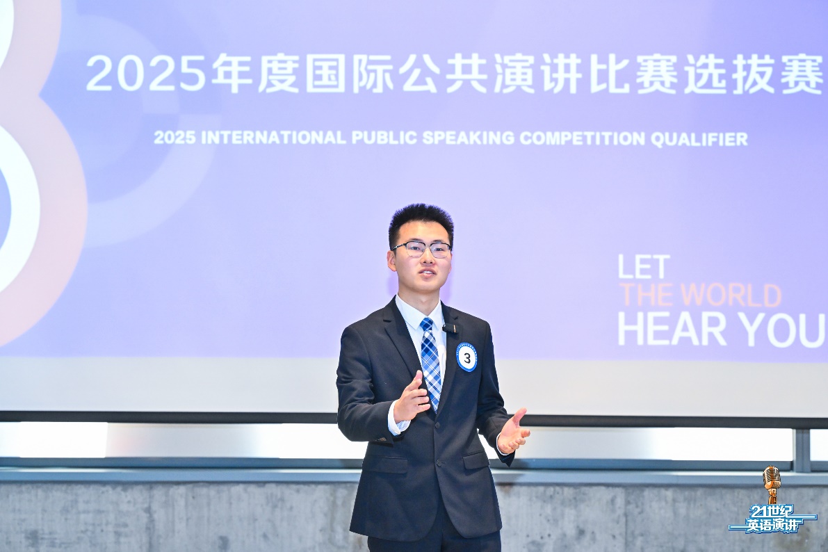 陈安熠同学于2024年10月在第29届中国日报社“21世纪杯”全国英语演讲比赛总决赛中获得全国一等奖,之后顺利入围2025年国际公共演讲比赛选拔赛的选拔。本次选拔赛赛制严格,竞争激烈。比赛分为三个环节,包括以“unity”为主题的4分钟已备演讲、2分钟问答和2分钟即兴演讲。陈安熠同学克服了时间紧、任务重带来的种种困难,在指导老师的悉心指导下,夜以继日地打磨演讲稿,反复练习演讲技巧,最终凭借扎实的语言功底、敏锐的思维和出色的临场发挥征服了评委和观众,成功锁定两个代表中国参赛的席位之一,展现了中国Z世代青年学子的卓越风采。