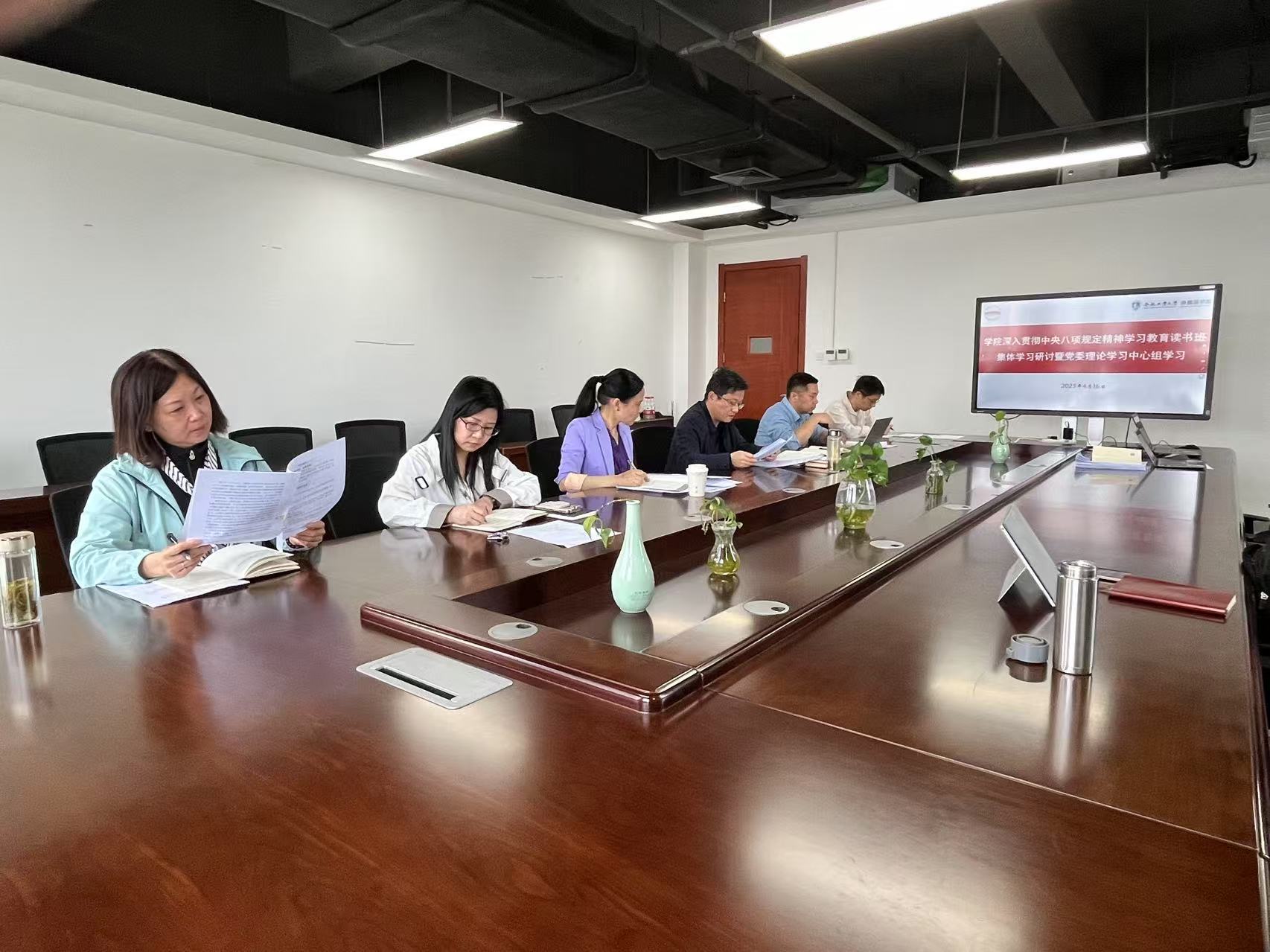 2025年4月16日,学院在翡翠科教楼A座1510会议室举行深入贯彻中央八项规定精神学习教育读书班集体学习研讨暨党委理论学习中心组学习。会议由学院党委书记刘晓峰主持,学院党委理论学习中心组固定成员参加学习。