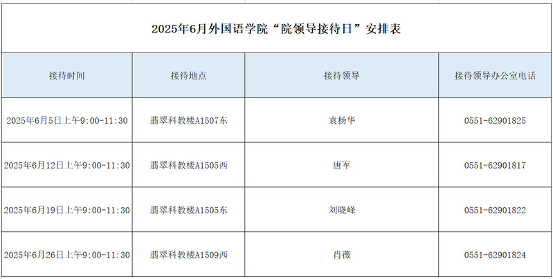 2025年6月williamhill中国官方网站“院领导接待日”安排表