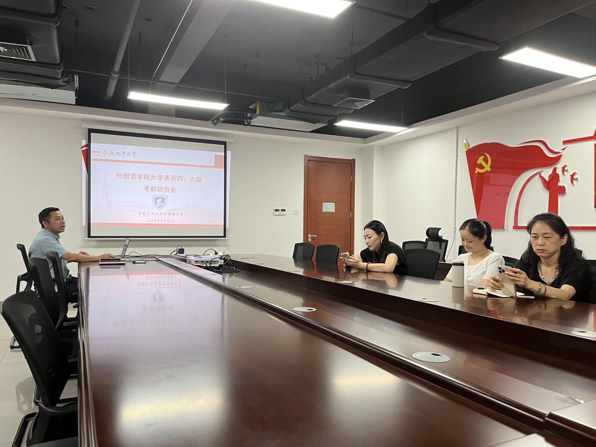 2025年6月12日下午,学院在翡翠湖科教楼A座1508室召开大学英语四六级考前动员会。大学英语一系、二系及各教研室主任、大学英语教学教改中心(教学指导与质量过程监督中心)主任参加了此次会议。